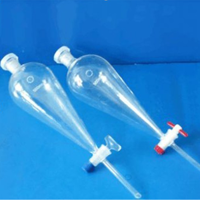 L'imbuto separatore a forma di pera è una vetreria comunemente utilizzata nei laboratori, ampiamente applicata nelle operazioni di estrazione, separazione e miscelazione di liquidi. Prende il nome dalla sua forma che ricorda una pera ed è uno degli strumenti più fondamentali e importanti negli esperimenti di chimica organica